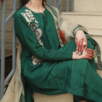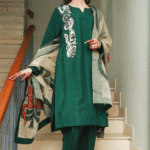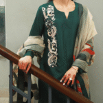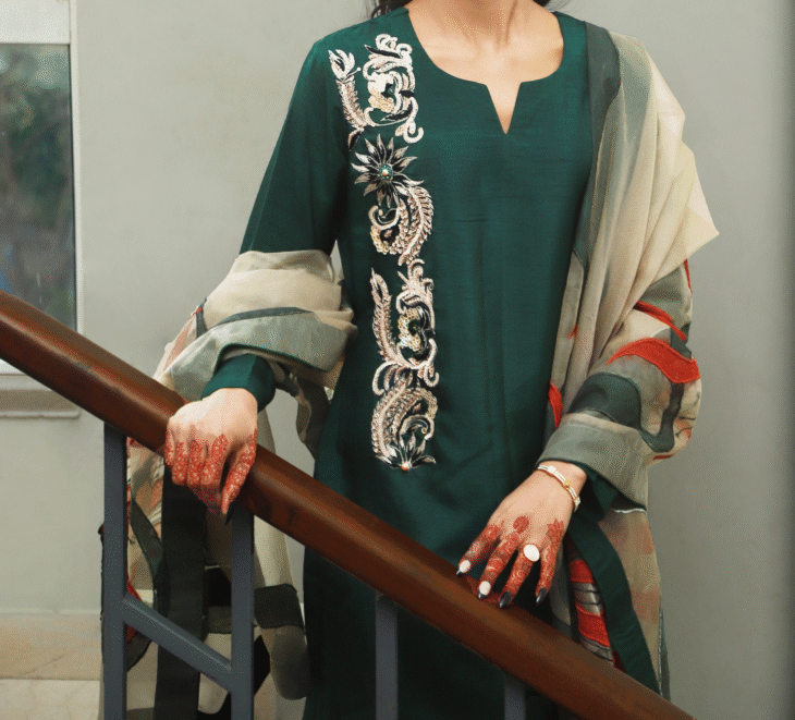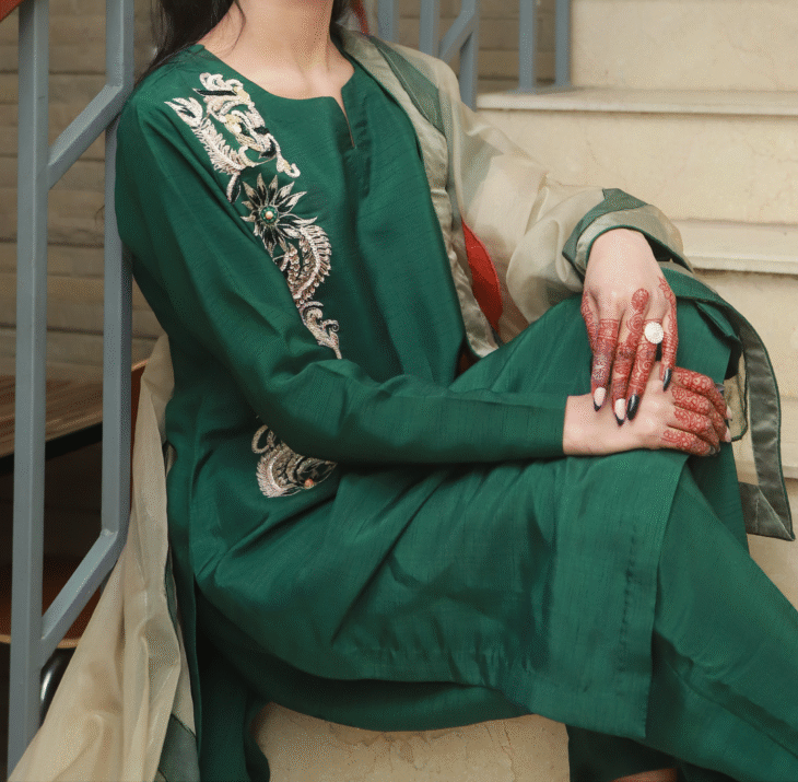 3-Piece Emerald Bloom – Premium Raw Silk & Embroidered Organza