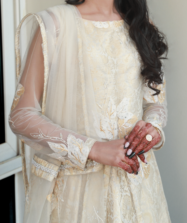 - Embellishments: Delicate embroidery with intricate stonework detailing