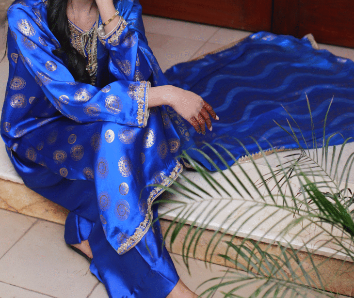 Be the first to review “3-Piece Royal Blue Silk Embroidered Kaftan Set”