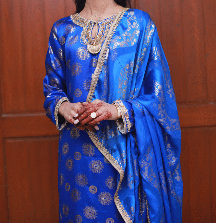 Step into elegance with this captivating royal blue kaftan set, a timeless ensemble that perfectly blends traditional charm with contemporary grace. Designed to exude sophistication, this outfit features a graceful silhouette that drapes beautifully, making it ideal for festive gatherings, weddings, family functions, or cultural festivities.
