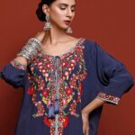 This elegant kurta, made from natural viscose silk, is beautifully adorned with intricate multicolor silk floss Aari embroidery.