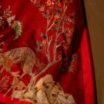 Heran Bagh is a breathtaking shikargah scene, intricately stitched across a stone-toned raw silk. Delicate deer, lush botanical gardens, and a vibrant landscape are brought to life with incredible detail. Crafted over 25 hours using 32 rare materials and 9 distinct techniques, this piece is Vashah’s most coveted collector’s item – a living heirloom.