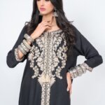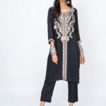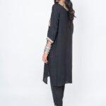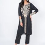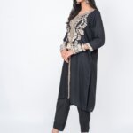Experience sophisticated charm with this natural black viscose silk kurta, beautifully detailed with champagne gold zari Aaree embroidery.