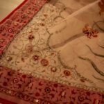 Named Zara, “the one who leaves behind light,” this exquisite beige canvas glows with the delicate beauty of Mughal floral designs. Chilka sitara, naqshi, gotta, and vibrant sequins are interwoven, reflecting light as if capturing fleeting memories. It’s a whisper of timeless heritage, born from 19 hours of dedicated artistry, and designed for individuals who carry their grace with understated elegance