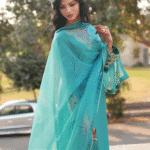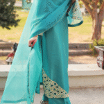 - Design Details: Straight-cut shirt paired with a tailored trouser and an ornately bordered dupatta