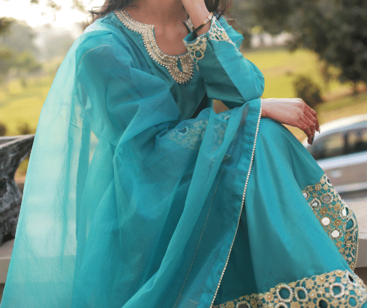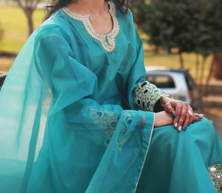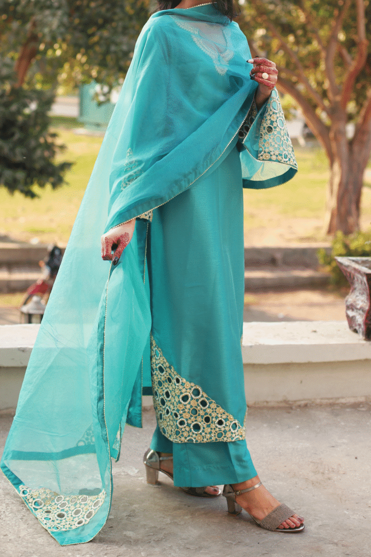 Teal Radiance – 3-Piece Raw Silk and Organza