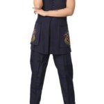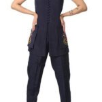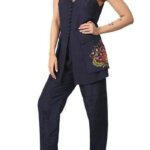 Make a splash with this casual jacket, featuring dynamic multi-colored Aaree silk-thread embroidery on the pockets and sleeves. It’s designed to be effortlessly dressed up for any evening gathering.